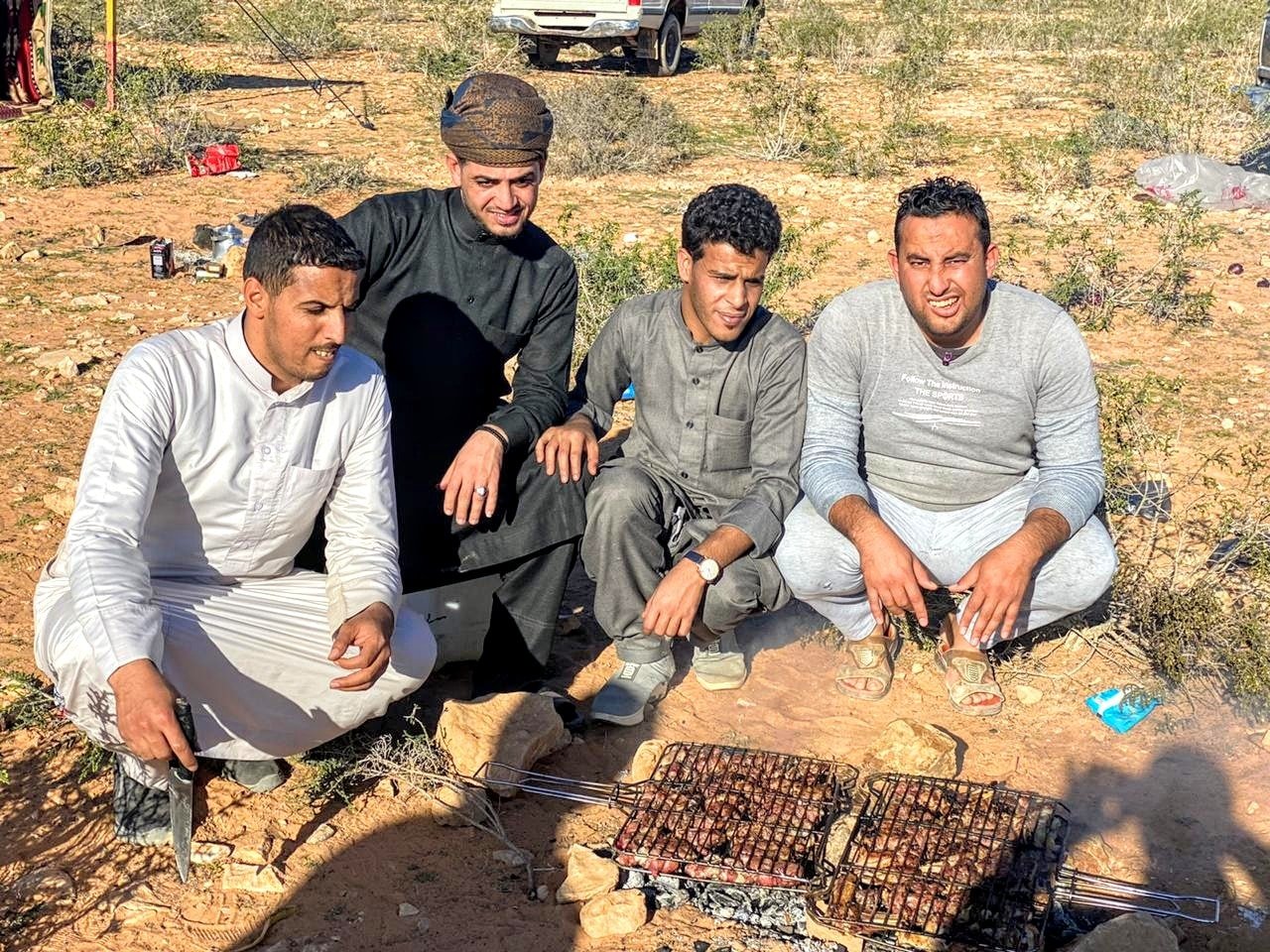 ويقسم الشباب أنفسهم مجموعات كل منهم يقوم بصناعة وعمل شىء، فبعضهم يتولى جمع الحطب، من الصحراء، وجذوع الزيتون، وأخرون مسئولون عن نحر الذبيحة، وتقطيعها وتجهيز اللحمة للوجبات الثلاثة على مدار اليوم، حيث يكون الإفطار بالعلاقة وهى الكبدة والكلاوى والقلب ويتم تقطيعها قطع صغيرة، وتسويتها مع البصل على الحطب، وبعض الشباب يتولى صناعة الخبز، من الدقيق، ويقوم بتسويته على الحطب، وتناوله طازجا مع الطعام، والبعض يقوم بتحضير السلطة والخضروات وتقطيعها، وغيرهم يأتون بالجراكن ويتوجهون لملىء المياه من الآبار وهو ماء السماء «ميه المطر» كما يطلق عليه أهالى مطروح.