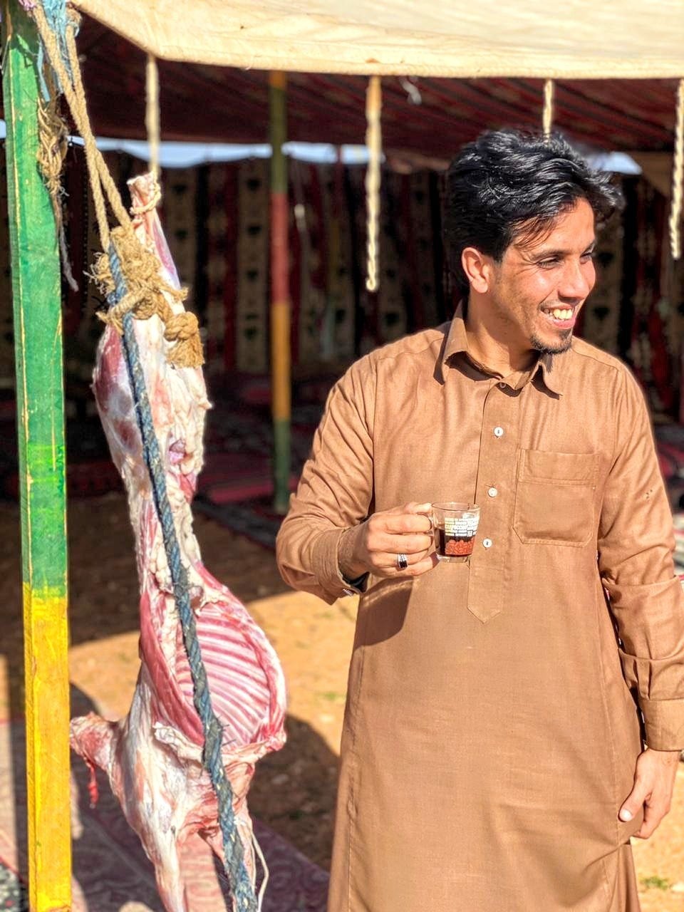 وعلى جمرات الحطب، يغلى براد الشاى الأحمر والأخضر ويتناولون الأخضر أولا بعد أكلة دسمة من اللحمة الضانى والمكرونة المبكبكة، واللحوم المشوية، كى تحرق الدهون، ليعقبها الشاى الأحمر الثقيل، ثم البراد المزود بنكهة النعاع الصحراوى، ومع غروب الشمس تتجسد الطبيعة بكامل أركانها فى أجواء شتوية يحتمى المتواجدون بنيران الحطب، حتى يأتى موعد العشاء والذى يطهون فيه اللحمة مع الأرز الأحمر بالطماطم والصلصة، وهى أكلات بدوية لا يعرفها إلا أبناء البادية، ولم يأكل منها أحد من أبناء القاهرة ووادى النيل إلا واستهوته مطروح وجذبته طعامها، كما تجذبه شواطئها ومزارتها السياحية والأثرية، وهدوئها ونقاء أجوائها، ومعاملة أهلها وأبناء قبائلها أصحاب الجود والكرم والذين يتمتعون بأخلاق الفرسان.