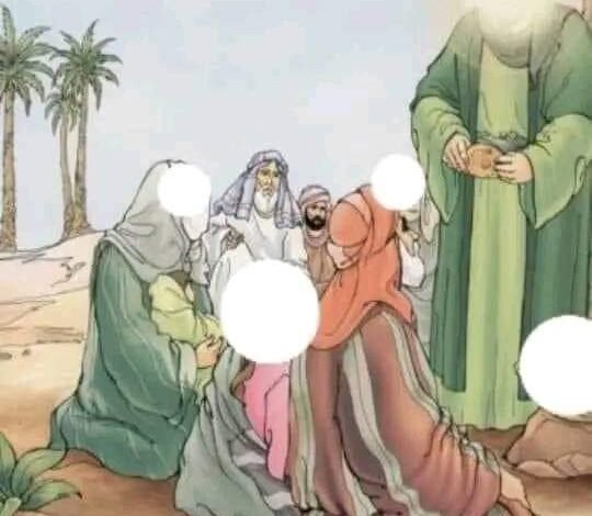 فسكتت الكبرى .. ونادت الصغرى متلهفة : لالا ..لا تفعل ذلك رحمك الله هو إبنها ولم توافق على ذلك. ورضيت أن يكون ولدها للكبرى فيعيش وتراه عن بعد و هذا يسعدها بلا شك وهل ترضى الأمّ أن يُقتل ولدها أمامها ؟!