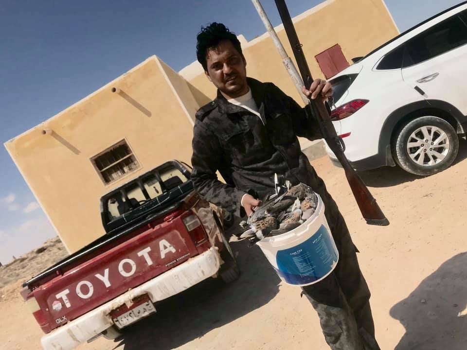 – الطيور أنواع عديدة، منها ما يؤكل ومنها ما لا يؤكل كالطيور الجارحة مثل الصقور ولها مواسم، أما طيور الصيد الأخرى التى تؤكل، فهي متنوعة من حيث الأحجام والأنواع، ومنها على سبيل المثال القمرى «اليمام المهاجر» وأبو صفير ويتميز بلونه الأصفر الساطع، والجلمة وهى أطول من اليمامة والأمر وتشبه دجاجة الماء والسمان، والذقنوش وهو ذو منقار حاد بالإضافة إلى أنواع كثيرة وهى صغيرة الحجم والتى تقع تحت ما يسمى فى الطيور بالشحيم، ومنها على سبيل المثال (الدبسية وأم حميم، وأبو حميد والذكار) وجميع هذه الطيور برية مهاجرة نقوم بصيدها فى مزارع التين والزيتون فى الصحراء بعيدا عن الضوضاء، كما أن هناك طيور نصطادها على البحر، وهى مثل النغاق والأوز والبط الشرشير والودود وهذه الطيور كبيرة الحجم يتراوح وزنها من بين واحد كيلو جرام إلى 10 كيلو جرام، وهناك نوع مثل الأوز الأبيض والغرنوق وهما من أكبر أحجام الطيور المهاجرة ويصل وزنهم إلى 13 كيلو جرام للواحدة.