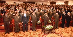 وعدد من قادة القوات المسلحة والشخصيات العامة والخبراء الإستراتيجيين وعدد من دارسى الكليات والمعاهد العسكرية وطلبة الجامعات المصرية .