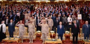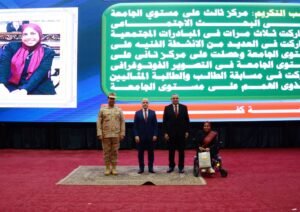 وتقديم موضوعات توعوية أعدها نخبة من أعضاء هيئة الأكاديمية العسكرية للدراسات العليا والإستراتيجية وأساتذة الجامعات ، لإيضاح الجهود التى تقوم بها الدولة وكافة مؤسساتها فى مختلف المجالات ، بالإضافة إلى تقديم عدد من العروض والأعمال الفنية المعبرة عن حب الوطن شارك فى تنفيذها طلبة الجامعات ، وأُختتمت الندوة بتكريم عدد من أسر الشهداء وذوى الهمم .