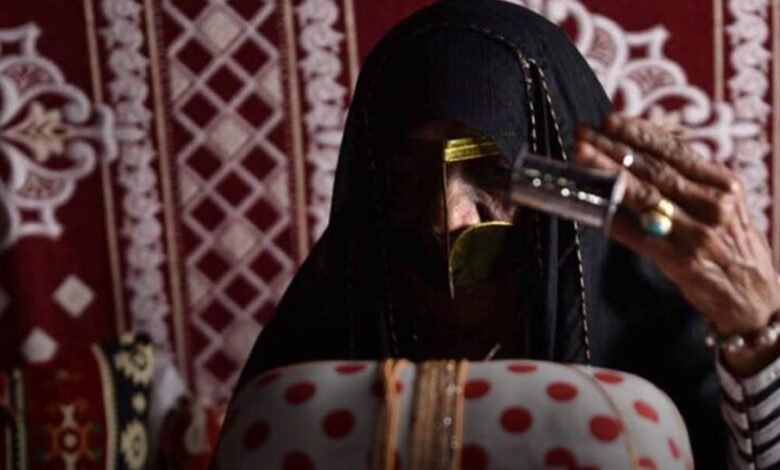 - البرقع:قطعة تغطي الحاجبين والأنف والفم، مصنوع من قماش سميك مستورد من الهند، بألوان متعددة مثل الكحلي والبرونز والأصفر الذهبي الأكثر شيوعًا، وتختلف أسعار البرقع حسب اللون وجودته.