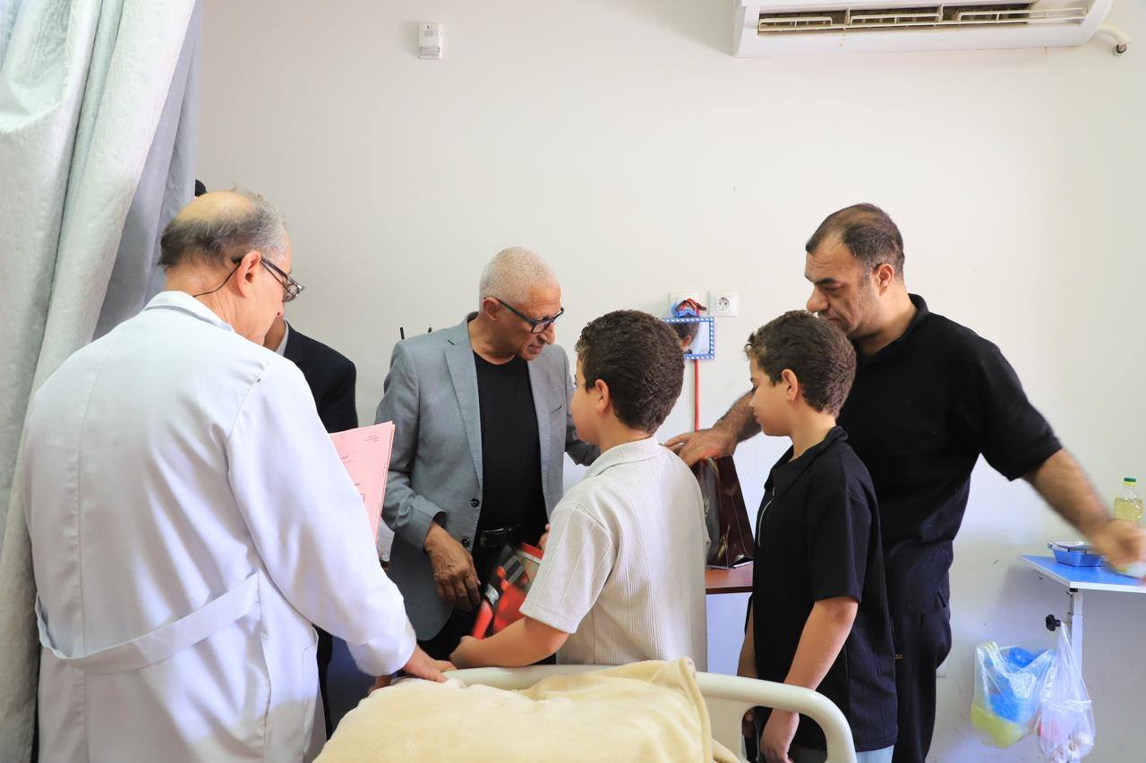 وخلال الزيارة أجرى المحافظ زيارة إلى مستشفى نخل المركزي وقدم التهنئة إلى الجرحى الفلسطينيين بمناسبة عيد الأضحى المبارك، بجانب توزيع الهدايا والألعاب على الأطفال بالمستشفى.