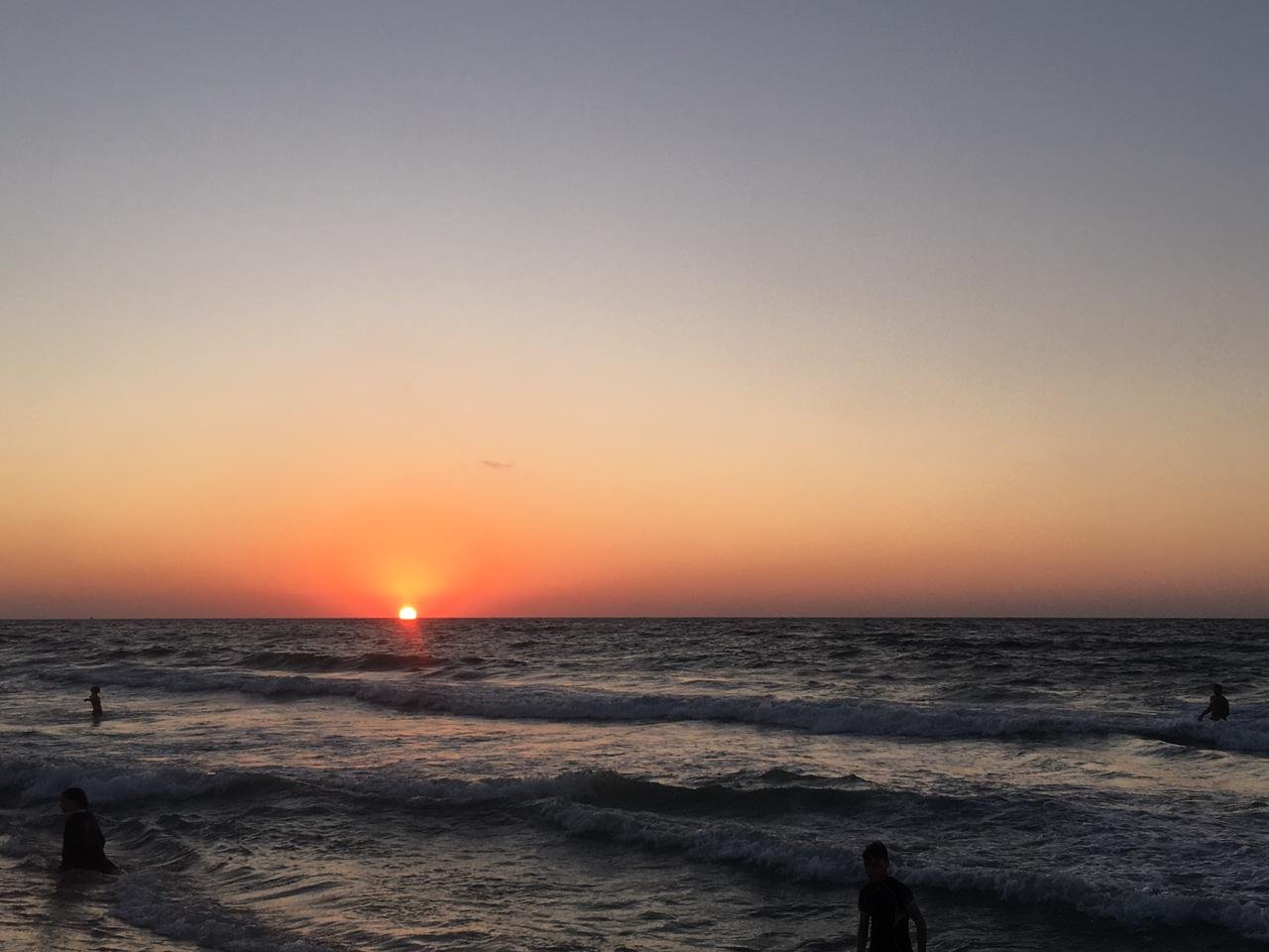 سيناء – محمود الشوربجي – غروب على سواحل العريش الساحرة، تترك الشمس توقِيعها على آخر لوحاتها في ذلك النهار، كإعلان ختام رحلة اليوم، وسط مشهد من الألوان المُبهرة تكسو الأفق والمياه، لتستمتع عيون روّاد شواطئ المدينة بلحظات من الجمال عند مَغيب الشمس، تدعو المشاهد إلى بدايات جديدة تشبه ذاك المشهد الذهبيّ المرسوم بـ «ريشة الشمس».