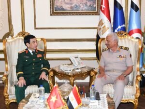 من جانبه أشار وزير الدفاع بدولة فيتنام إلى حرص بلاده على دعم العلاقات العسكرية وتبادل الخبرات بين القوات المسلحة لكلا البلدين فى مختلف المجالات العسكرية خلال المرحلة المقبلة .