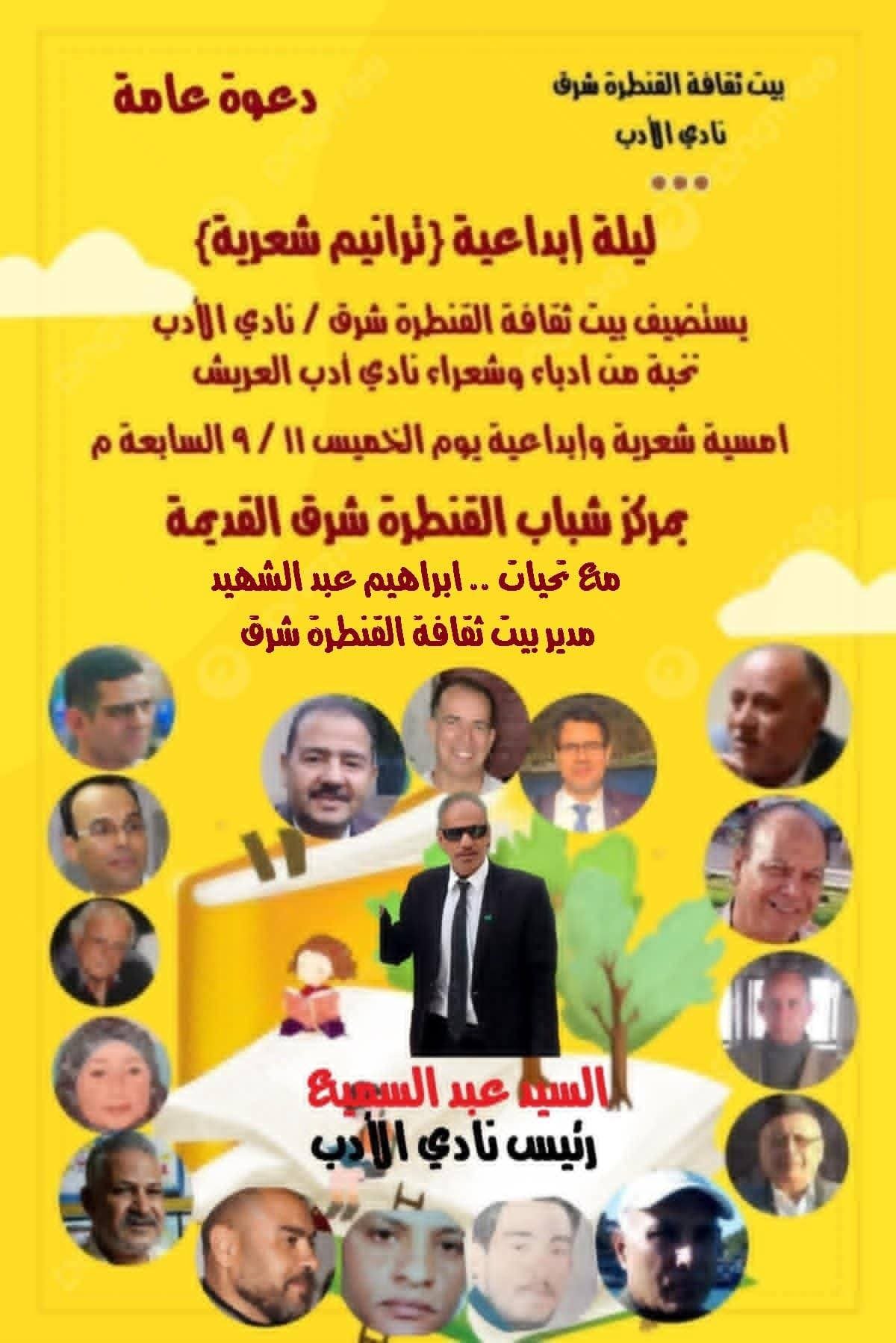 كل التحية والتقدير لكل أدباء وشعراء القنطرة شرق، كل بإسمه، وتحيا مصر، تحيا مصر.