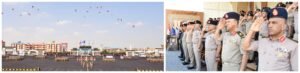 بدأت مراسم الإحتفال بعرض المهارات الرياضية وفنون الدفاع عن النفس والقتال المتلاحم والتى عكست الكفاءة البدنية والقتالية والمهارة العالية التى إكتسبها الطلبة طوال مدة دراستهم بالكلية ، أعقبها عرض المهارات الفنية بإستخدام السلاح ، تلا ذلك عرض عدد من الأنشطة البحثية والإبتكارات التى نفذها طلبة الكلية والتى تهدف إلى مواكبة التطور العلمى فى مختلف المجالات ، وإختتمت العروض بالعرض العسكرى شارك فيه مجموعات من طلبة الكلية يتقدمهم حملة الأعلام ، كما عزفت الموسيقات العسكرية سلام الشهيد تكريماً لروح شهداء الوطن الأبرار .