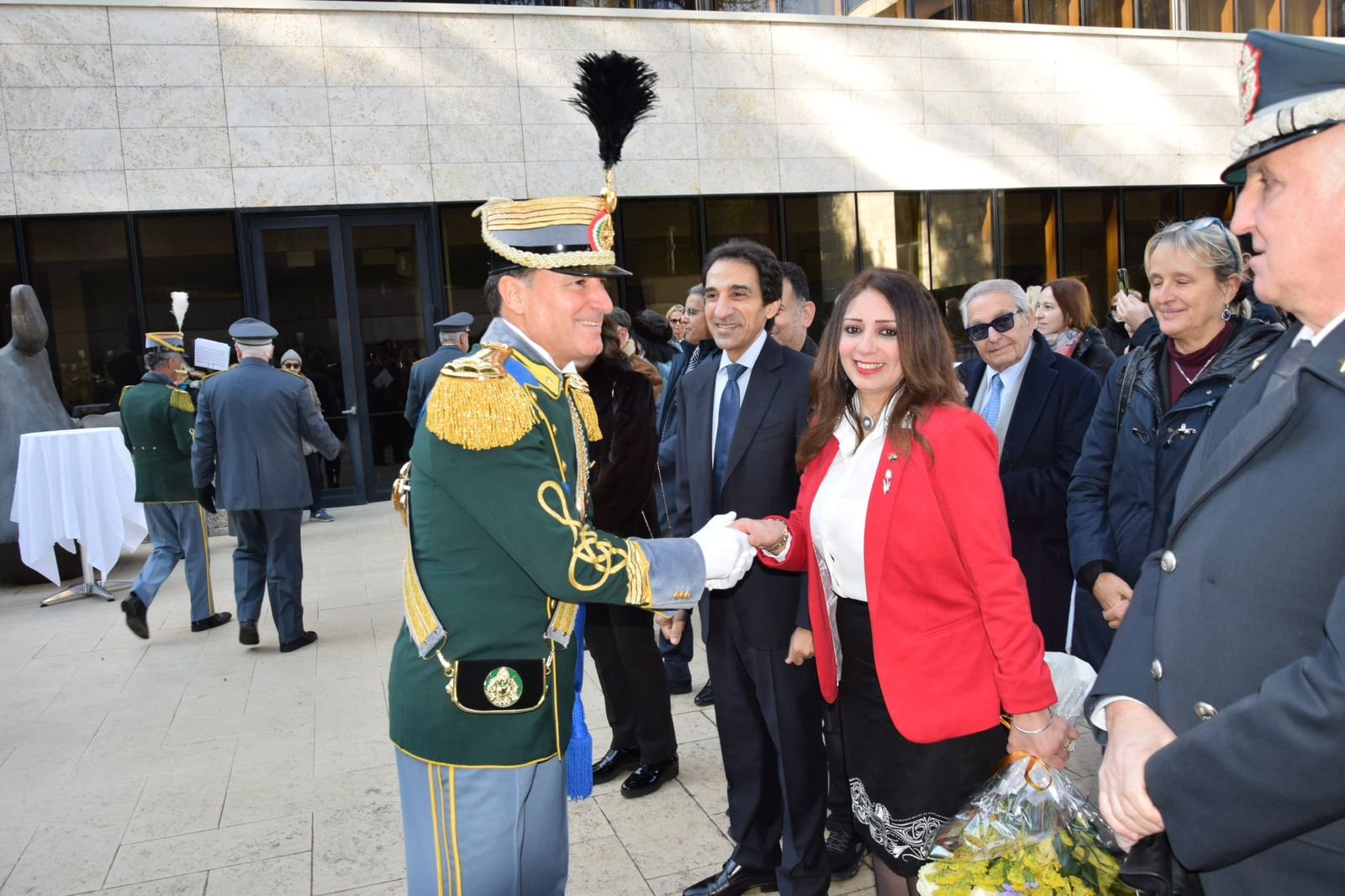 حضر الحفل لفيف من المجتمع الإيطالي والسادة السفراء الأجانب والمجتمع الدبلوماسي والفنى والثقافى، وكذلك عدد من الجنرالات الإيطاليين برئاسة الجنرال “كارميلو اذارا” قائد ادارة الموسيقات العسكرية الإيطالي.