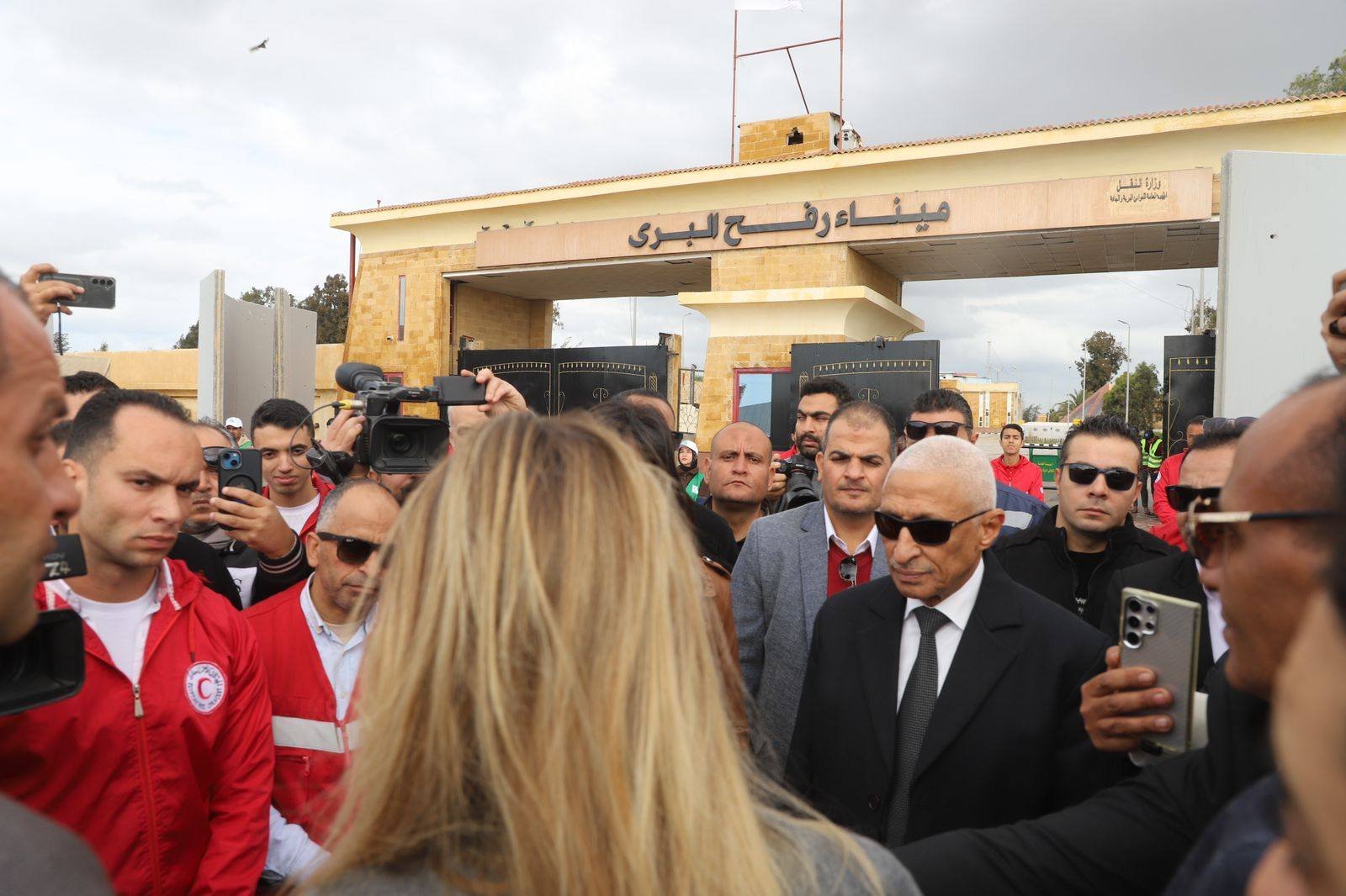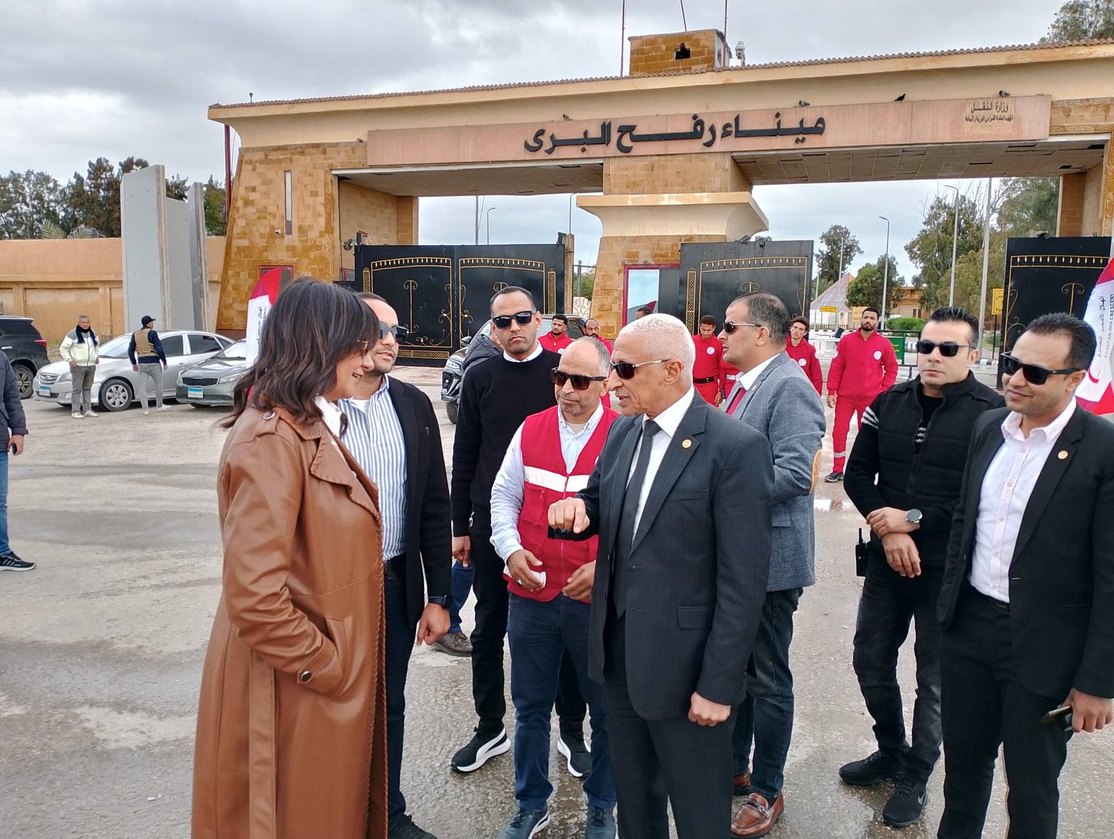 على بوابة معبر رفح البري، وقفت جولي برفقة اللواء خالد مجاور، محافظ شمال سيناء، حيث تفقدت المعبر واطلعت عن قرب على الجهود المصرية المتواصلة لتسهيل دخول المساعدات الإنسانية إلى القطاع المحاصر.