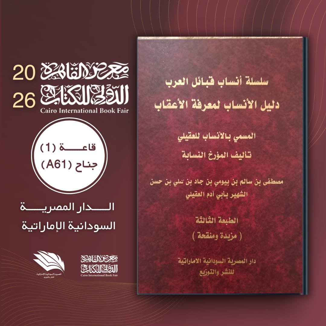 في زمن تتسارع فيه الأحداث وتضيع التفاصيل بين الذاكرة والنسيان، يخرج إلى النور كتاب استثنائي يعيد للتاريخ نبضه، ويمنح الأنساب صوتها، ويصل الماضي بالحاضر في نسيج علمي موثق؛ إنه كتاب «دليل الأنساب لمعرفة الأعقاب» المعروف باسم «الأنساب للعقيلي»، في طبعته الثالثة، ضمن سلسلة أنساب قبائل العرب، للمؤرخ المحقق النسابة وشيخ النسابين مصطفى بن سالم العقيلي.