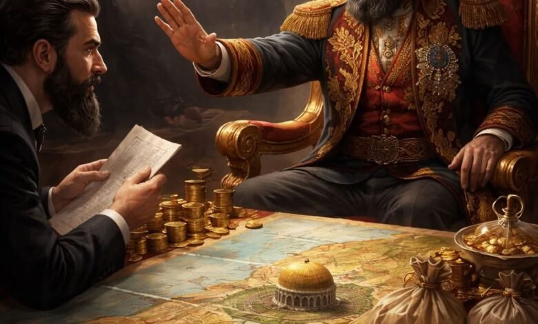 سافر هرتزل إلى إسطنبول أكثر من مرة، وحاول الوصول إلى السلطان عبر وسطاء من رجال الدولة والشخصيات المؤثرة، وقدم عرضًا ضخمًا تضمن دفع ملايين الجنيهات الذهبية للدولة العثمانية، والمساهمة في تسديد جزء كبير من ديونها، ودعمها ماليًا داخل أوروبا، إضافة إلى ضخ استثمارات كبيرة في أراضي الإمبراطورية، وكان الهدف واضحًا، الحصول على إذن رسمي يسمح بهجرة اليهود إلى فلسطين وتأسيس كيان لهم هناك تحت مظلة الدولة العثمانية.
