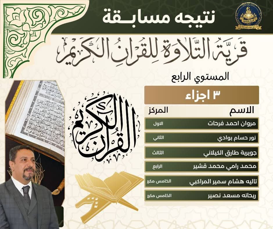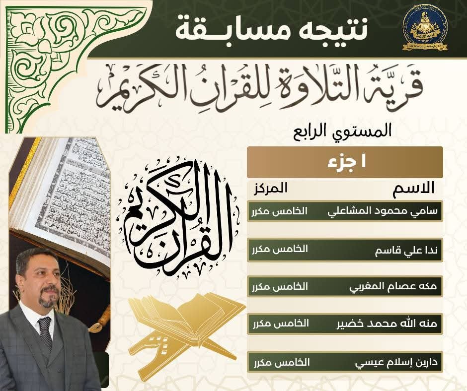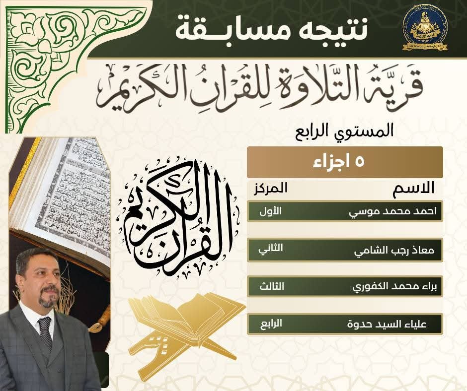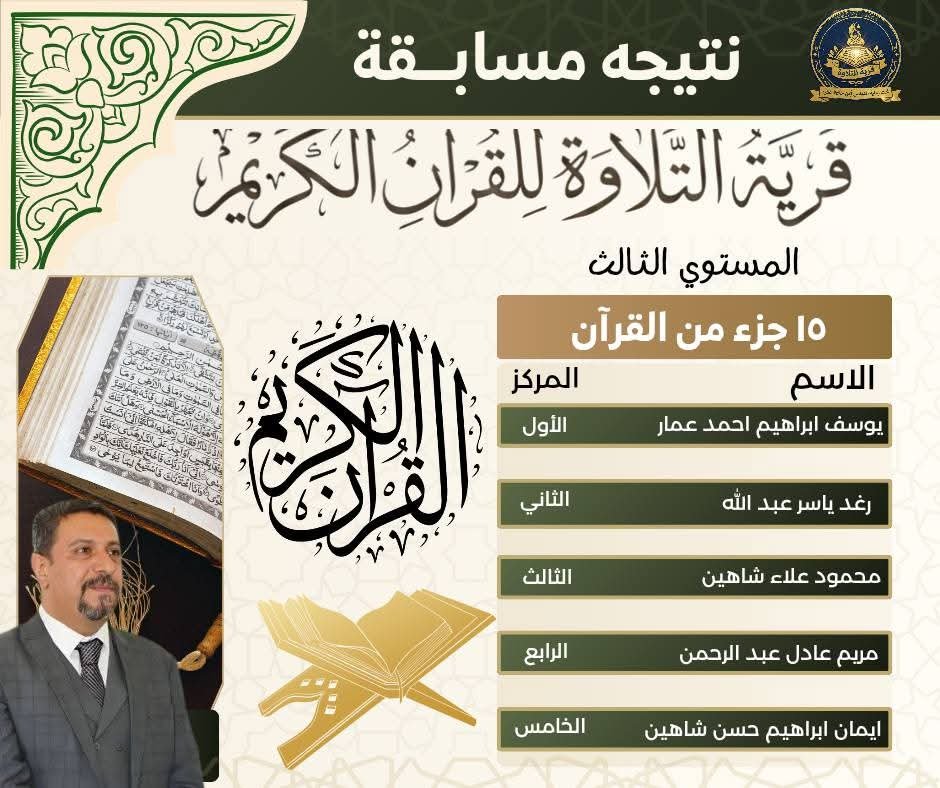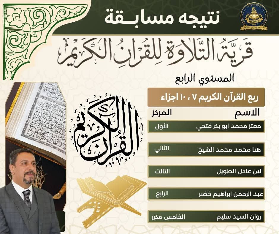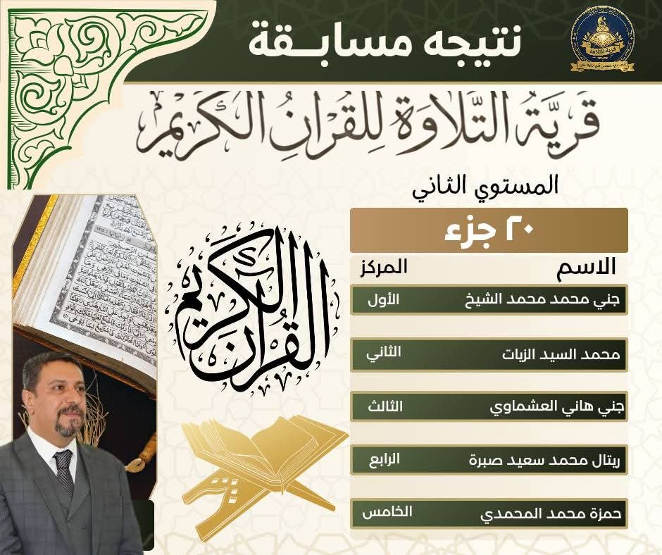 وهنأ القائمون على المسابقة الفائزين، متمنين لهم دوام التوفيق والنجاح، وأن يكون القرآن الكريم نورًا في قلوبهم وسببًا لرفعتهم في الدنيا والآخرة.