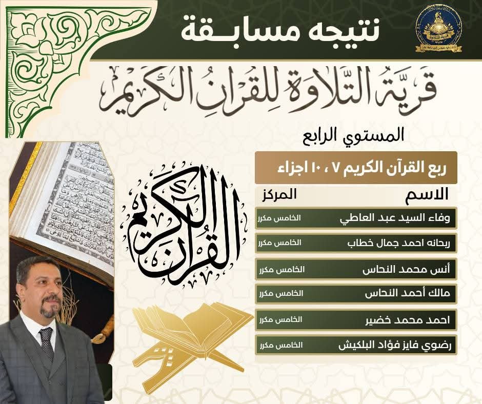 برعاية المهندس أيمن حافظ عفره.. إعلان نتيجة مسابقة “قرية التلاوة” للقرآن الكريم