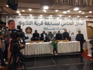 اختتمت فعاليات مسابقة قرية التلاوة بقاعة نادي القضاة بمدينة طنطا على طريق الملاحة برعاية المهندس أيمن حافظ عفره نائب رئيس الاتحاد العربي للتنمية الاجتماعية المستدامة لشئون العلاقات العربية والدولية بمنظومة العمل العربي المشترك بجامعة الدول العربية وذلك بحضور عدد من القيادات والشخصيات العامة وبحضور المهندس وائل حافظ عفره مدير عام شركة الشرق جروب للاستثمار والتجارة والدكتور سالم عبد الجليل وكيل وزارة الأوقاف الأسبق بالغربية والدكتور طه عبد الوهاب خبير الأصوات والمقامات والمحكم الدولي إلى جانب الفريق ممدوح الحصري الأمين العام للاتحاد العربي للتنمية الاجتماعية المستدامة لشئون العلاقات العربية والدولية بمنظومة العمل العربي المشترك بجامعة الدول العربية أعضاء المنصة.