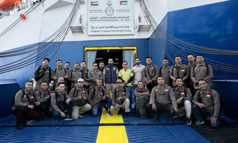 بدعم من وكالة الإمارات للمساعدات الدولية.. وصول دفعة جديدة من الفريق الطبي الإندونيسي إلى المستشفى الإماراتي العائم بالعريش