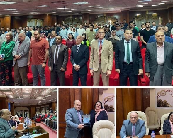 امين عام المؤتمر وتنظيم د وفاء لطفي لمحاضرة الطلبة واعضاء هيئة التدريس في مؤتمر التنمية المستدامة والامن القومي