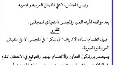 المجلس الأعلى للقبائل العربية والمصرية يعلن انضمام “آل شكر” رسميا